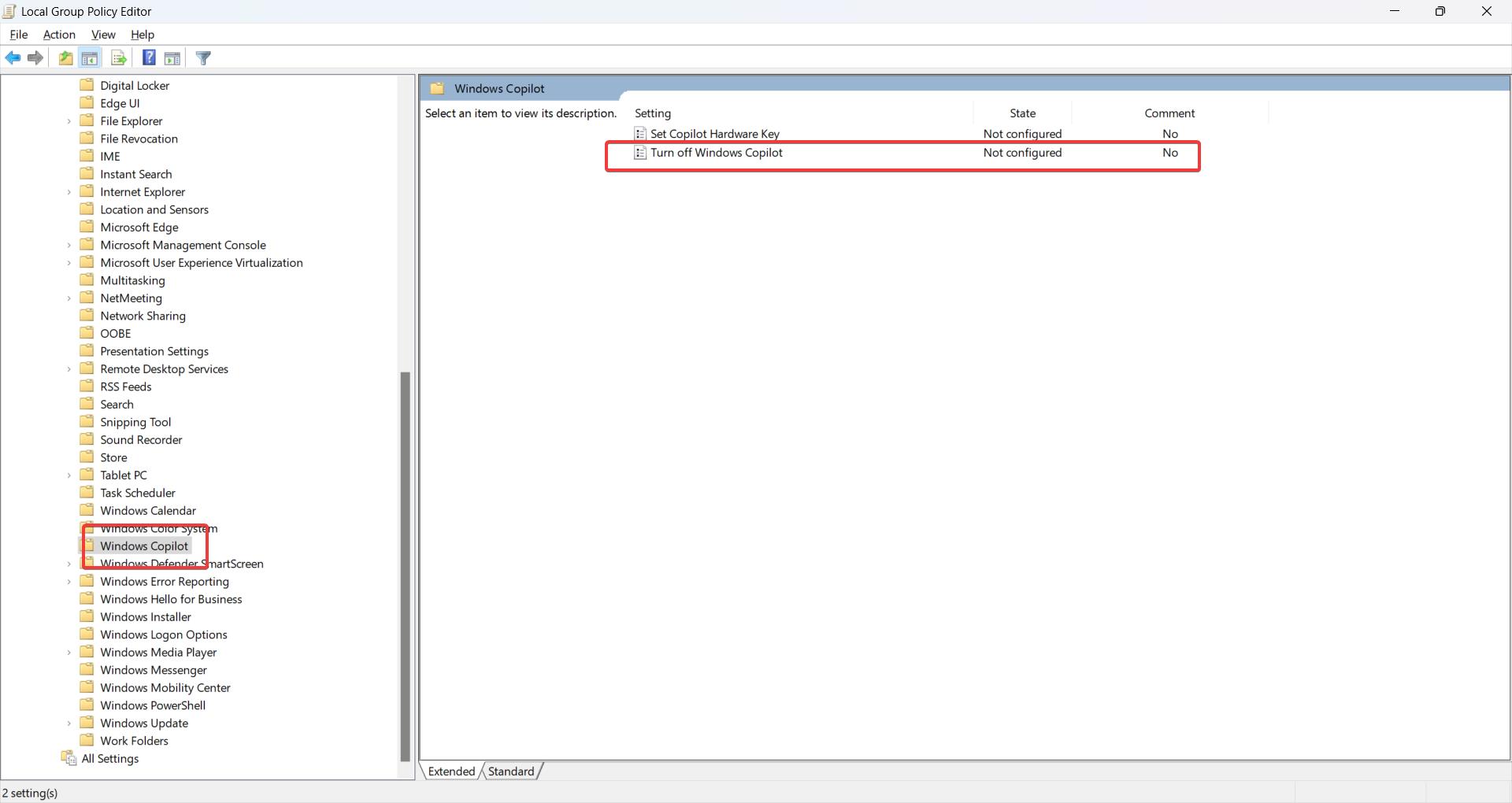Sometimes the first command may not work, but you can continue with the second command. This worked on my Windows 11 Home edition. I was able to get the disabled settings back. Then I am able to control the Copilot feature settings.