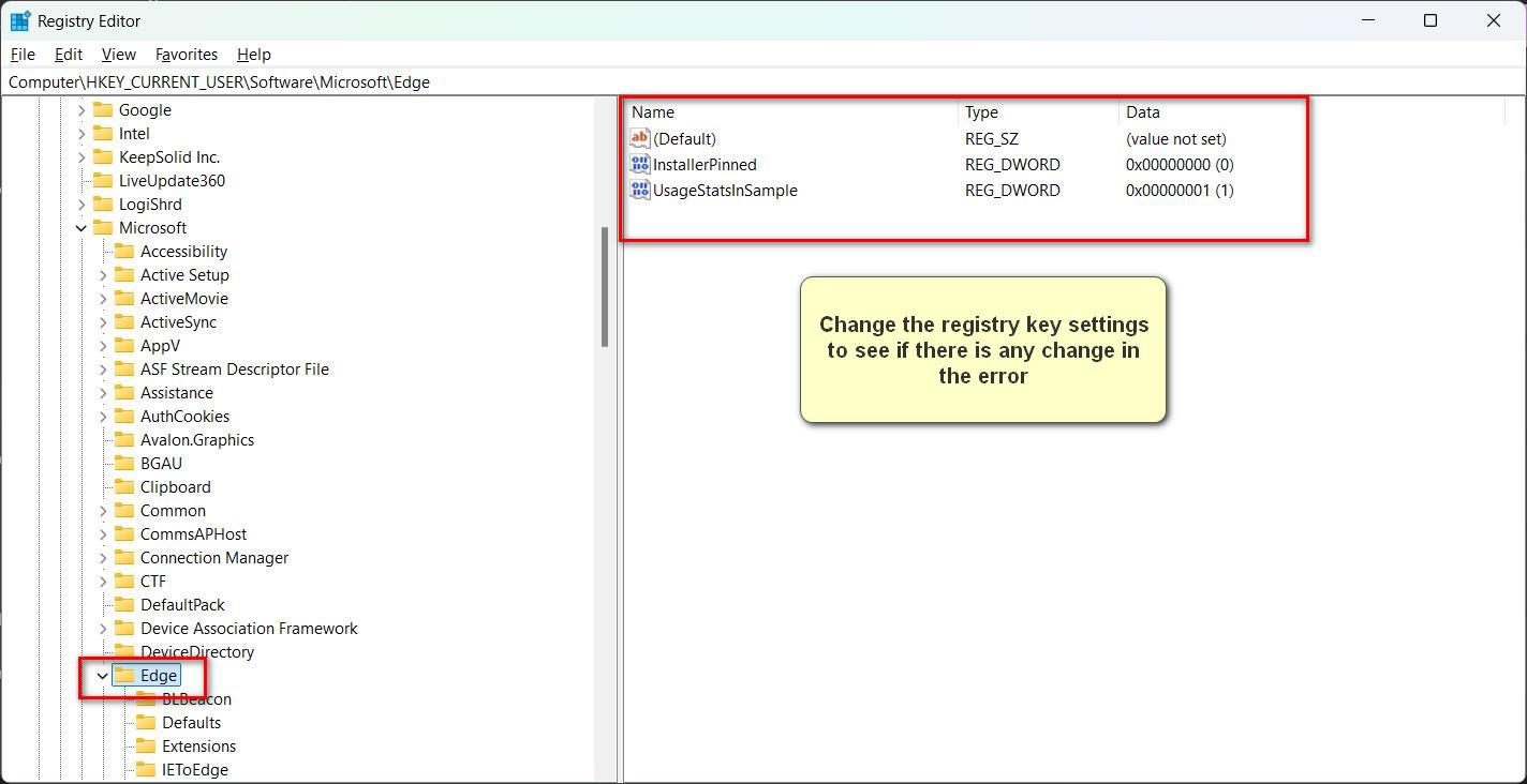 HKEY_CURRENT_USER\Software\Microsoft\Edge. - You can check relevant registry entries and add any if necessary.